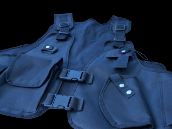 Vesta protectie si paza tip interventie, din tesatura impregnata, cu 5 buzunare. Vesta este regrabila la dimensiunile purtatorului si este dispusa cu toc pentru pistol.